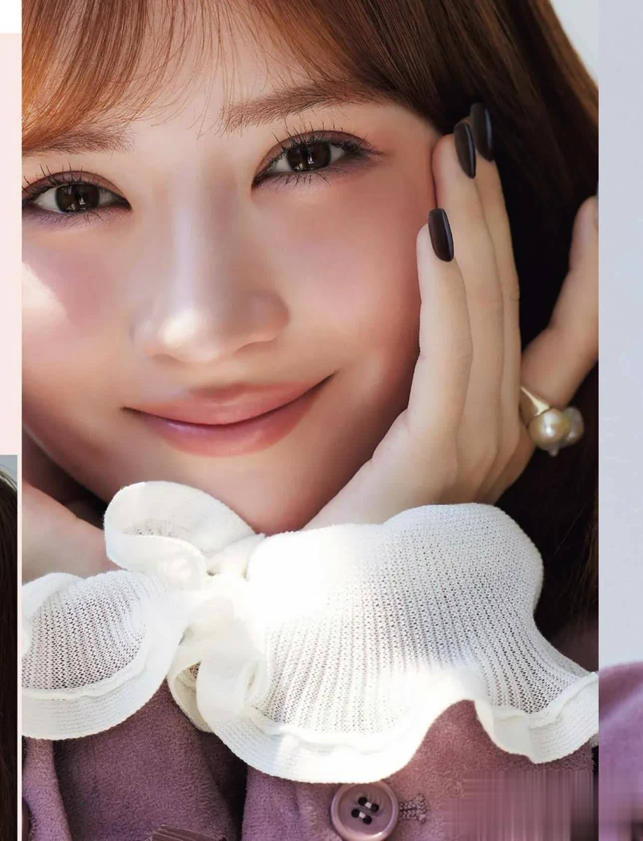 和唇色呼应,整张脸都在发光